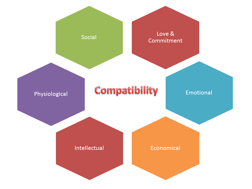 - Economical Compatibility : This is to meet up with the material demands and lifestyle needs of one another, without stress on the other five elements. Whether we like it or not, lifestyle changes aren’t as easy as one may assume – as aspects 1 & 2 might help to some extent but cannot hold economical issues forever, as they crop up very often.
